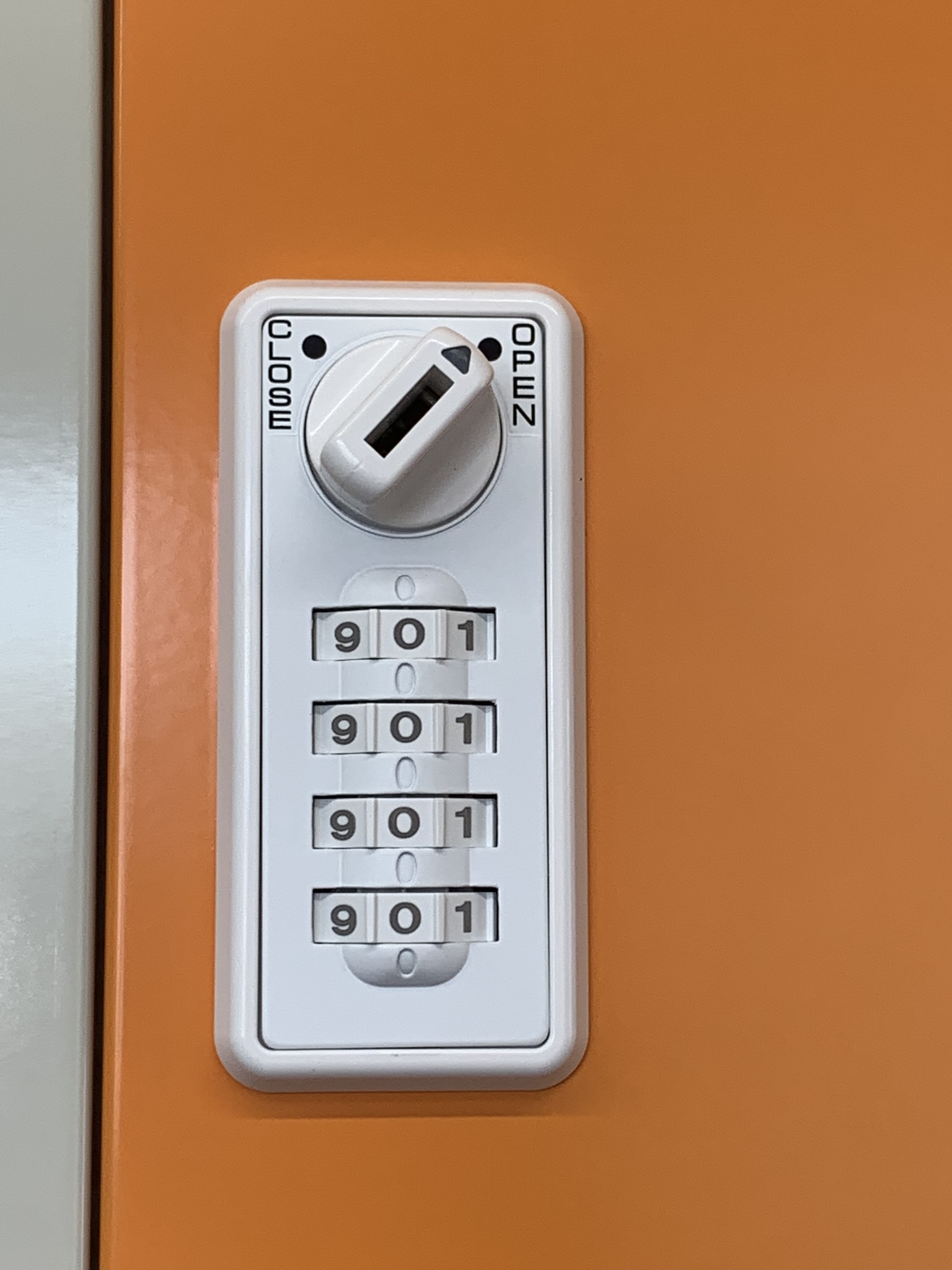 ・収納庫のダイヤル錠を自分の番号に合わせてドアを開けます。